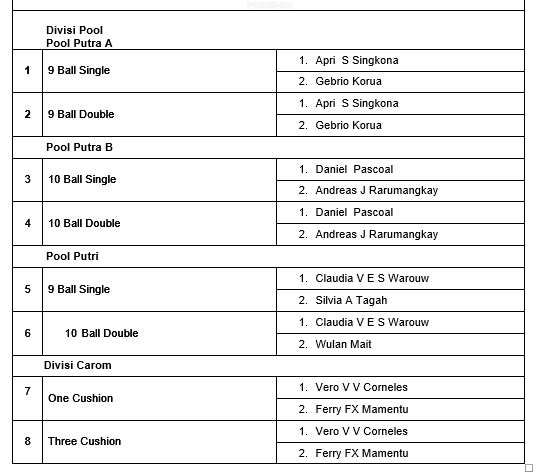 POBSI Sulawesi Utara mengajak seluruh masyarakat olahraga di Sulut, khususnya penggemar biliar, untuk memberikan dukungan penuh kepada para atlet yang tengah berjuang membawa nama daerah di panggung nasional.